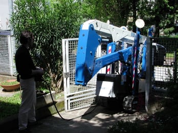 - Small foot print - and compact design of the Bluelift machines makes getting on-site much easier. With the option to drive the machine via remote, saving on the extra height needed for a ride along operator tracked machines excel in their ability to gain access through narrow doorways, tight gates and areas of low head clearance.
