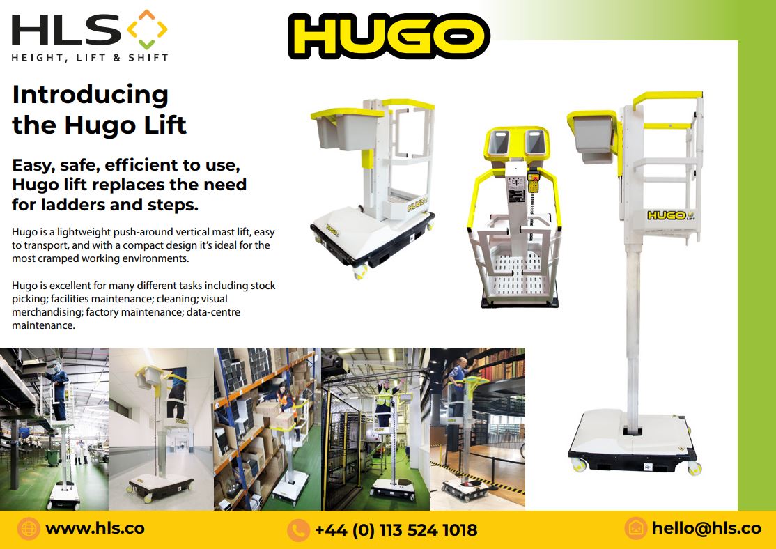 Our very own Hugo Lift is a push-around vertical mast lift available for sale (both new and used), for short-term hire, or for long-term lease. Compact, lightweight, and versatile, Hugo is quickly becoming the preferred choice for businesses across sectors who want a modern alternative to ladders. And now, you can download our free Hugo Lift Spec Sheet to see full details and images of Hugo in action.